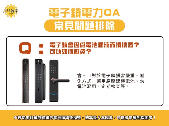 Q:電子鎖會因為電池漏液而損壞嗎?如何避免?